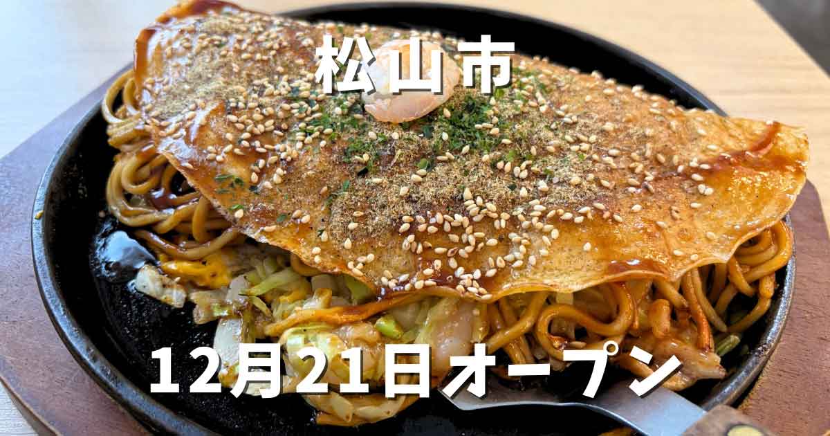 2025年12月21日、松山市木屋町に「お好み鉄板焼き∞無限(むげん)」がオープン!学生さんも気軽に立ち寄れる鉄板焼き店で、名物は三津浜焼き。ランチはメニュー限定で、塩唐揚げとドリンク付き。今回は三津浜焼きお好み焼きランチ950円(そば)を実食!SNSフォローでトッピング無料もあり。