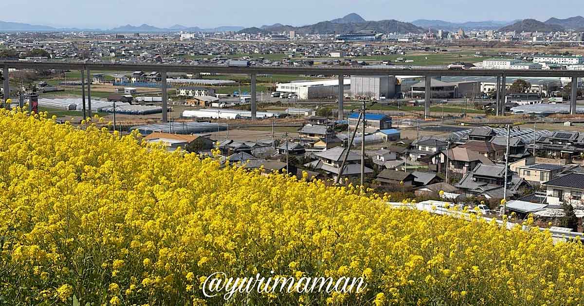 【伊予市】伊予病院近くの菜の花畑|八倉に“黄色い丘”の春景色(2026年)