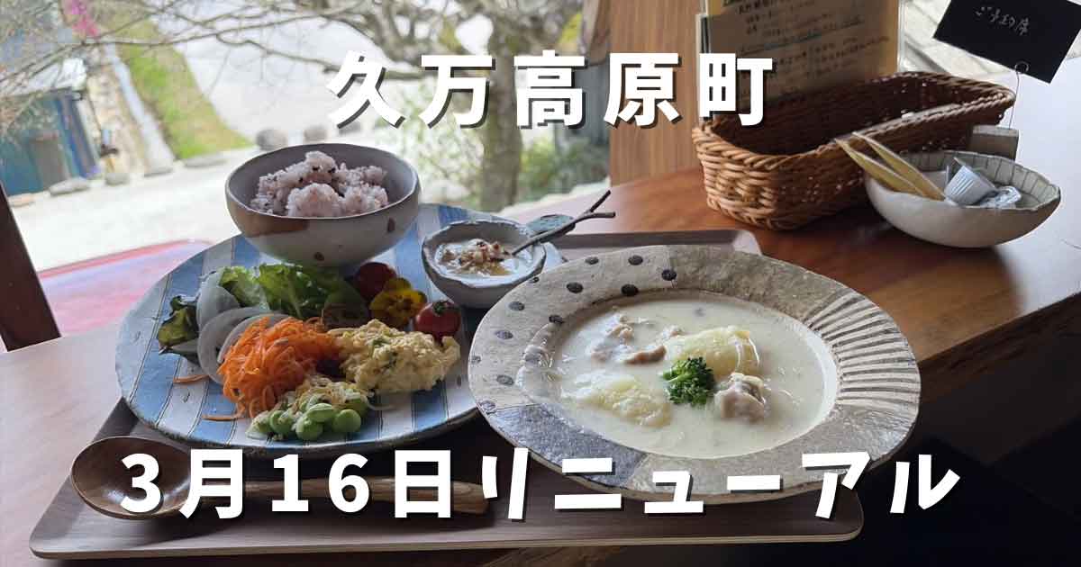 久万高原町の「わたぐもカフェ」が2026年3月16日にリニューアルオープン。古民家の納屋をリノベーションした落ち着く空間で、自家製天然酵母のパンランチや手作りスイーツが楽しめます。今回はクリームシチューのランチとチーズケーキを実食。予約のポイントや店内の雰囲気も紹介します。